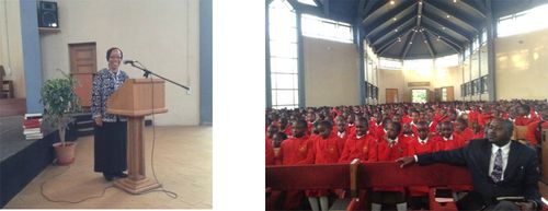 Ruby speaking to over 1000 students at Moi High School, top in the nation in 2012 and second in 2013.
